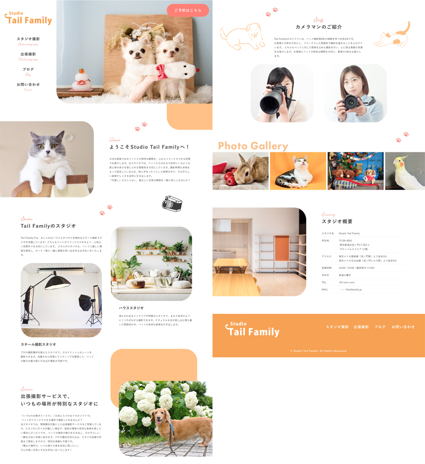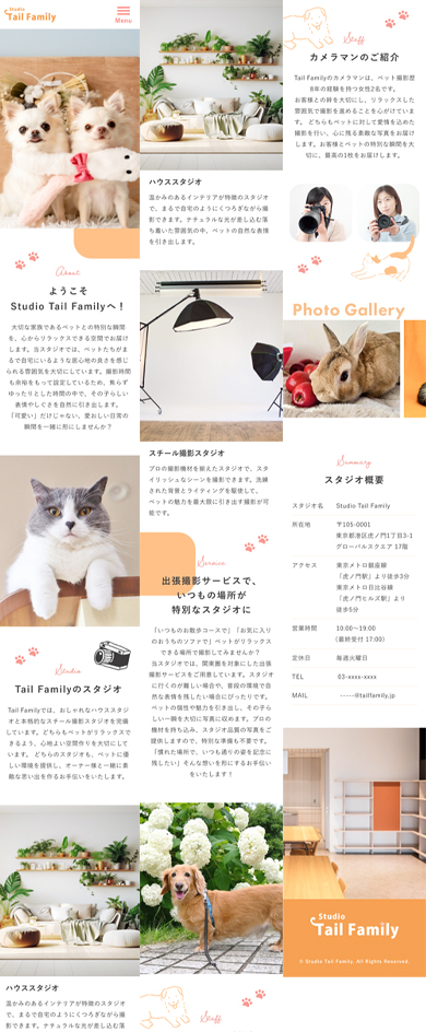 ペット専門の撮影スタジオ・出張撮影サービスのHPデザインです。