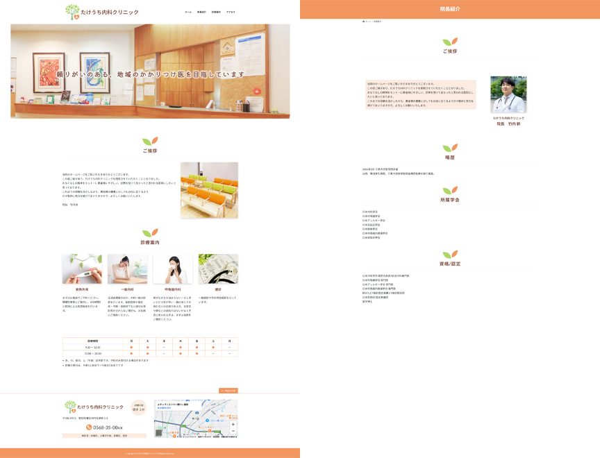 トップページ、院長紹介ページから構成されるクリニックのHPです。